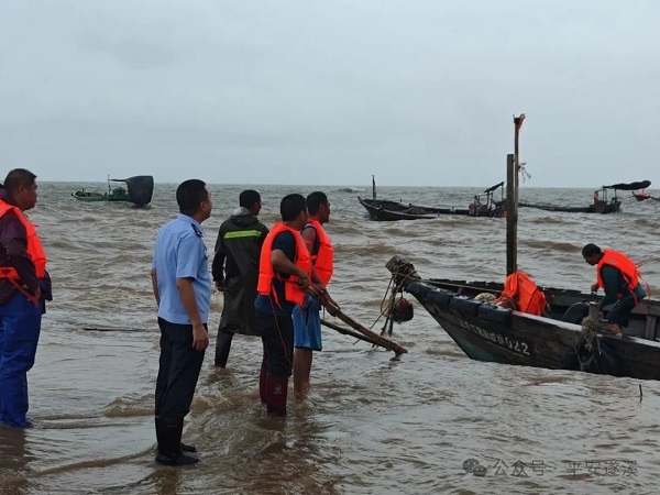 面對隨時可能被風浪吞噬的漁民,現場民警沒有絲毫猶豫,立即聯動江洪鎮政府相關部門火速展開救援行動?!皾O船固然重要,但生命無價,請立即上岸!”民警們頂著風雨,在堤岸上竭力呼喊勸阻。面對漁民護船的急切心情,民警與鎮干部動之以情、曉之以理,反復強調當前極端天氣的巨大風險,同時迅速協調應急力量在岸邊做好接應防護準備。經過多方耐心疏導與果斷處置,短短十分鐘內,所有涉險漁民被安全帶離怒海,成功實現轄區漁民“零傷亡”的硬核守護。