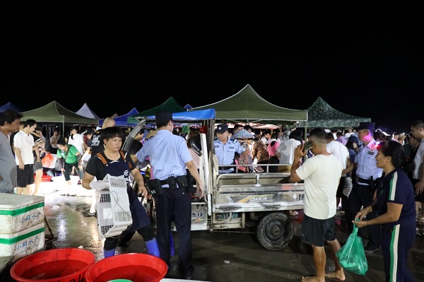 從漁市交易區(qū)到周邊市場及道路沿線,民警全程堅守崗位,用堅定的守護讓群眾在感受漁市熱鬧氛圍的同時,更添一份安心。