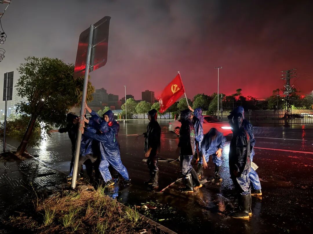 臺風登陸湛江期間,遂溪公安頂著狂風暴雨逆行沖鋒,持續開展搶險救援。