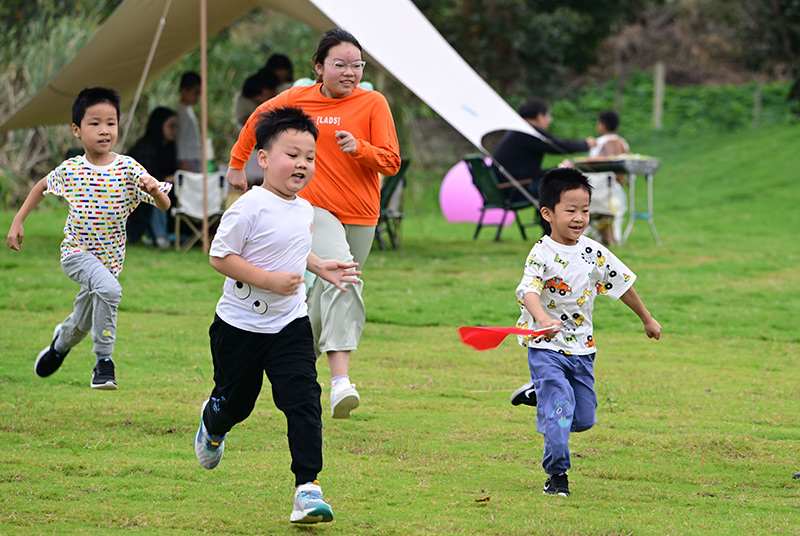10月3日,小朋友在江蘇省淮安市金湖縣呂良鎮三園村一處農莊追逐玩耍。
