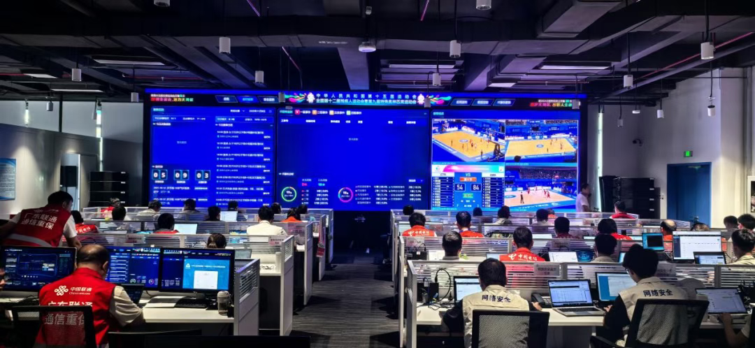 精彩背后,是數千名信息化團隊保障人員的無聲堅守。 在組委會的指導下,省執委會信息化專班以加強頂層設計為“指揮棒”,繪制了一張精準作戰的“分工圖”:省執委會統領信息化建設全局,一體謀劃推進各項數字服務保障工作落實落細;電信公司主攻云服務與衛星通信保障,筑起高速通信網絡的基石;移動公司承建競賽專網及跨境數據專線,為賽事的信息傳遞開辟了一條暢通無阻的通道;聯通公司搭建賽事指揮調度平臺,讓賽事的指揮調度更加高效有序;數字廣東網絡建設有限公司承建數據資源共享平臺、志愿者管理系統及接待管理系統,讓數據流得通暢、流得安全。各方攜手并肩、協同作戰,不僅夯實了賽事信息化的技術底座,更筑起一道堅不可摧的數字服務屏障。 在網絡運行方面,形成網絡保障、賽事運行等分隊,通過信息技術運行中心(TOC)實時監控網絡運行狀態、系統負載狀況、關鍵指標變化,形成“人守、物備、網控、數驅”聯動保障格局,對突發故障、網絡瓶頸、設備告警等情況實現秒級預警,確保賽事運行信息化系統全天候穩定可靠,在“零卡頓”“零中斷”服務保障中傳遞科技的溫度。 在網絡安全方面,網絡安全團隊提前部署,對21個業務系統互聯網暴露面進行排查和策略再收緊,加強對賽事專網、賽事互聯網、數據中心的實時監測。設置三級保障團隊,形成“資深網絡安全專家+遠程值班保障二線專家+產品研發技術專家”的梯次網絡安全保障團隊,筑牢網絡安全的“銅墻鐵壁”。開幕式當天,各業務系統運行平穩,未發生網絡安全事件,圓滿完成“零事故”網絡安全保障目標。