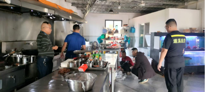 本次安全生產(chǎn)檢查餐飲經(jīng)營主體是否建立安全生產(chǎn)制度、從業(yè)人員不定期開展瓶裝液化石油氣安全、是否安裝并正常使用可燃?xì)怏w探測器、燃?xì)饩o急切斷閥、消防安全常識和應(yīng)急處置技能培訓(xùn)等。