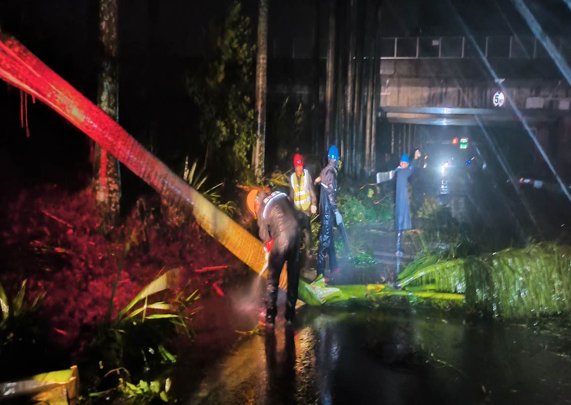 圖為應急搶險隊連夜開展路障清理工作