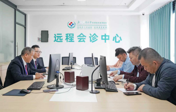 隨后進行座談,人民醫院院長鄧烈華匯報了三級醫院創建在學科建設、醫療服務能力提升等方面取得的階段性成果,以及緊密型縣域醫共體建設在資源共享、雙向轉診等方面具體實踐的情況匯報。據了解,遂溪縣在建設緊密型縣域醫共體方面進展順利,一是人員統籌方面,已實現對全縣15家鎮衛生院的全覆蓋派駐,并建立醫務人員半年輪換機制;二是轉診服務方面,醫共體綜合事務管理中心運行穩定,累計完成上轉患者1000余人次、下轉300余人次;三是技術幫扶方面,2025年上半年協助鎮衛生院開展新技術70余項,推動3家衛生院實現檢查檢驗數據互聯互通;四是專科建設方面,血液凈化中心建設穩步推進,創傷救治培訓、胸痛單元建設等工作取得實質性進展。